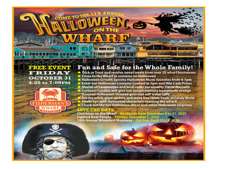 Monterey's Fisherman's Wharf Association hosts FREE "Wharf Walks - Walking Tours at Monterey's Old Fisherman's Wharf" now every  month… Learn More...